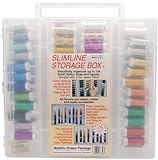 This assortment contains 24-spools of sulky sliver metallic thread (each a different color), 24 spools of sulky holoshimmer thread (each a different color), and 36-spools of sulky metallic thread (each a different color). All the threads come in the sulky slimline storage box-14 by 14-1/2 by 2-1/2-inch. Box is clear and has a carry handle. Imported.